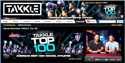 On the TAKKLE site, athletes, coaches, college recruiters and fans can see interviews with top high school players and coaches and video clips of top players in action. For example, fans can click in to see safety Rahim Moore of Dorsey High in Los Angeles, CA anticipate the quarterback’s throw as he darts, dodges and dives to provide pass coverage, or watch as offensive tackle Michael Brewster of Edgewater High in Orlando, FL sends opponents literally running for cover.