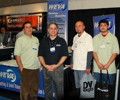 A large number of WEVA Latino members stopped by the booth throughout the show, including Rolando Hernandez, Cesar Gonzalez, and Oscar Dominguez (pictured far left) from PUNTO Magazine. We chatted about new industry developments and the success of last month’s West Coast Latino Videography & Digital Imaging Show where WEVA was a sponsor.